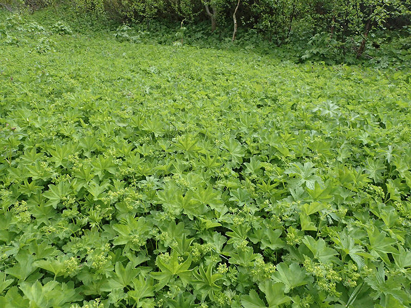 | En kjempestor bestand av engmarikåpe (Alchemilla subcrenata), fotografert i Oppdal i Trøndelag |