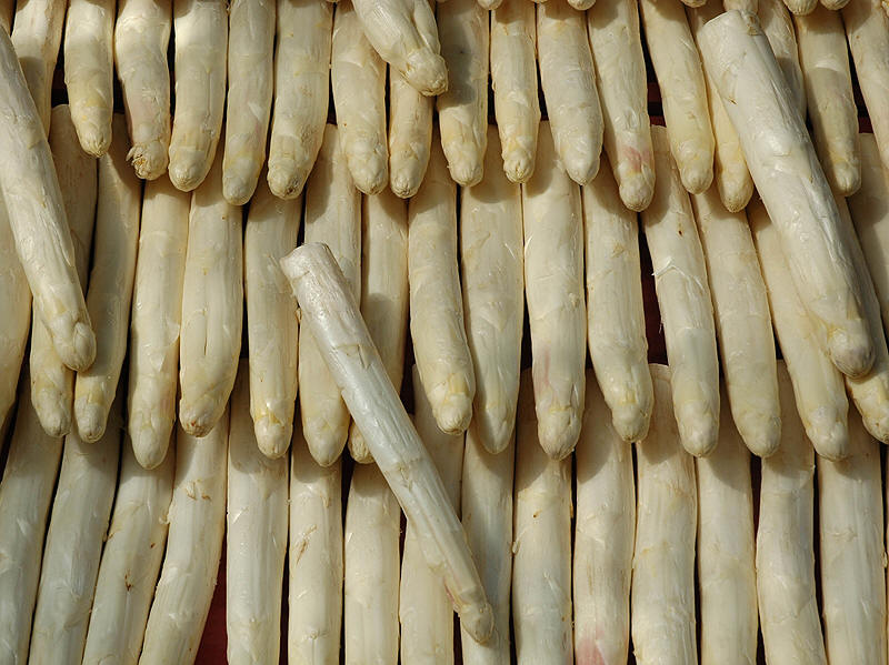 Det er de unge skuddene som brukes som mat, og de har en delikat og mild smak. Skuddene høstes når de er 20-30 cm lange, før de blir harde og trevlete. Det finnes to typer av asparges, hvit og grønn. Ernæringsmessig er asparges en av de mest kalorifattige matvarene, noe som skyldes at skuddene så å si mangler fett og dessuten har et veldig lavt karbohydratinnhold, men de er rike på protein. Som medisin er det stort sett bare røttene av planten som brukes. De inneholder stoffet asparagin som har en lindrende og reparerende virkning på slimhinnene i urinveiene. Aspargesrøtter har vært brukt siden oldtiden som et urindrivende middel og for behandling av urinveisinfeksjoner. På grunn av den betennelseshemmende og urindrivende virkningen til aspargesrøttene, kan de bidra til å skille ut overskudd av vann og salt, og skylle ut avfallsstoffer som har hopet seg opp i leddene. Dermed kan urten lindre smerter og opphovninger i ledd, og anbefales til behandling av revmatiske smerter, artritt, urinsyregikt, nyreforstyrrelser og ødemer. Asparges er en bitter urt som stimulerer fordøyelsen og virker svakt avførende på grunn av fiberinnholdet, og har dessuten en hjertestyrkende og beroligende virkning. |