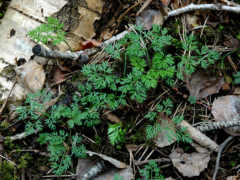 | Bildet viser grunnbladene til jordnøttplanter tidlig på våren. |