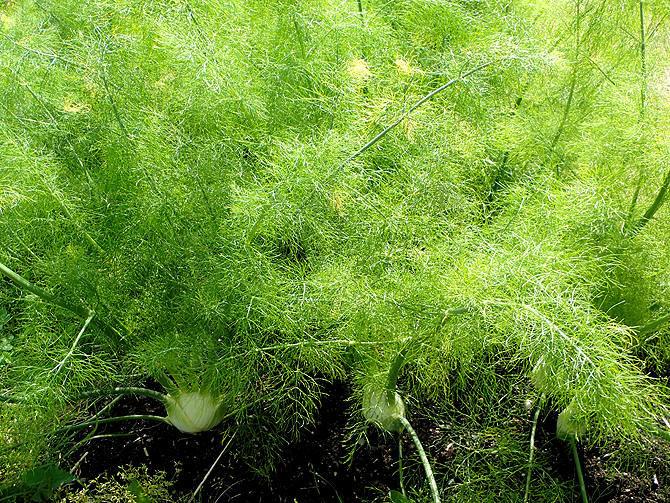 | Bildene over viser søtfennikel / florentinsk fennikel (Foeniculum vulgare var. dulce, syn. Foeniculum vulgare var. arizonicum), som har oppsvulmede bladskjeder. Denne varianten brukes primært som grønnsak. Til medisinske formål brukes de aromatiske fruktene av vanlig fennikel, en plante som normalt er høyere, og som ikke har knollformet basis (bildene under). |