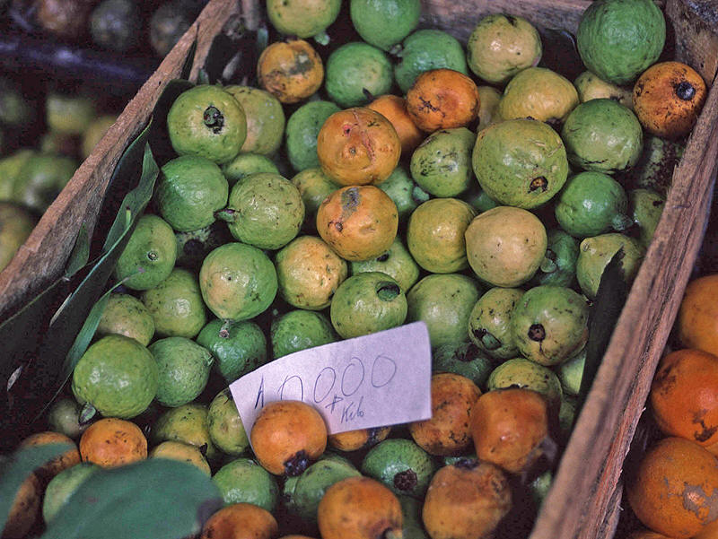 Guava er hjemmehørende i det tropiske Amerika, men er nå naturalisert i mange områder av verden med tropisk klima. Det finnes mange sorter guava som varierer i fasong, størrelse, farge og smak. Guava er en astringerende urt med antioksidant og antibiotiske egenskaper. Den er rik på C-vitamin, kalium og jern, og virker lett avførende. Den reduserer blødninger og senker blodsukkerverdiene. Det er rapportert krefthemmende og anti-HIV egenskaper. Urten brukes innvortes ved diaré, dysenteri, diabetes, febersykdommer (særlig malaria) og hoste. Utvortes på skader, byller og sår. Bladene brukes ofte i tradisjonell medisin, hovedsakelig til behandling av plager med fordøyelsen (f.eks. diaré) og diabetes, men også ved feber (inkl. malaria), hoste, svulster, byller og skader. En infusjon av bladene drikkes som te, og ved alvorlig diaré er anbefalt dose ett knust blad til én liter vann. I Ghana kokes bladene sammen med sitrongress som del av en hostemedisin, og moset rot gis mot dysenteri. Bladene tygges for å lindre tannpine. Smaken på guavafrukter er søt og syrlig med en nydelig aroma. Fruktene spises hovedsakelig naturell eller brukes til desserter, juice, is og gelé. Mye av produksjonen går til hermetikk. I dyrkingslandene lager man saft, kompott og framfor alt mos, som brukes i kaker, søte retter, drikker og en pasta som er svært søt. |