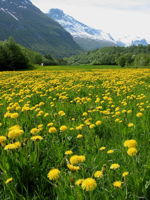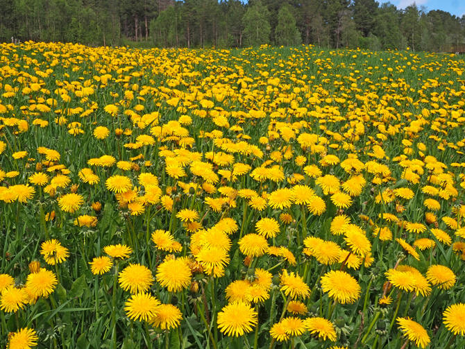 | En løvetann-eng i Oppdal, fotografert 9. juni 2019. |