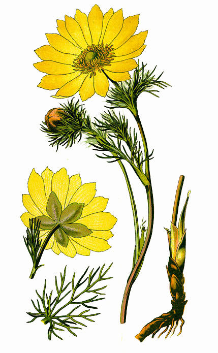| Denne illustrasjonen av våradonis er hentet fra Köhler's Medizinal-Pflanzen |
