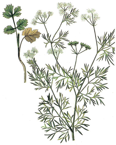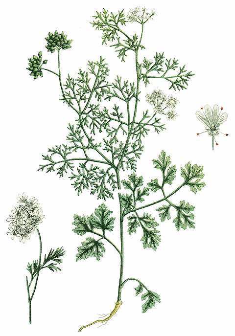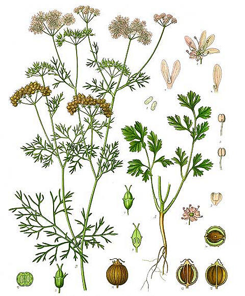 | Denne illustrasjonen av koriander er hentet fra Köhler's Medizinal-Pflanzen |