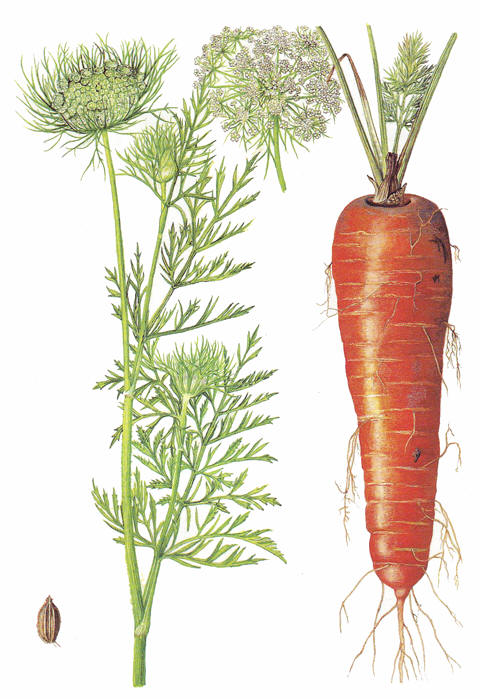 | Illustrasjonen av villgulrot er hentet fra Thomé: Flora von Deutschland, Österreich und der Schweiz |