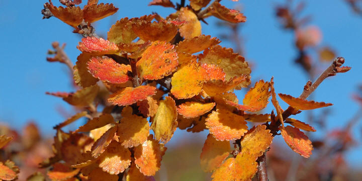 høstfarger som går i rødt, oransje og gult. Dvergbjørk krysser seg av