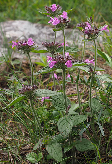 purpurrøde blomstene sitte tett samlet i få, nesten hodeformede