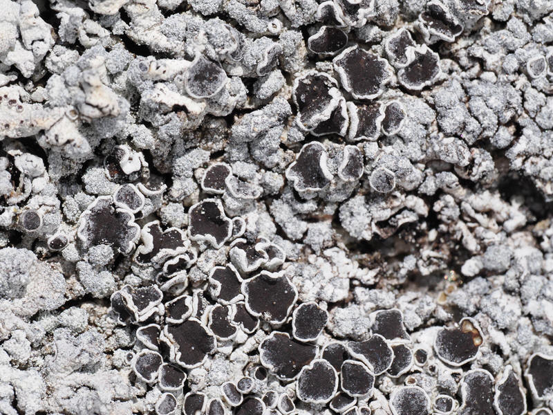 | På bildene over vises hoderosettlav som vokser på stein, mens bildet under viser laven når den vokser på stammen av et tre (spisslønn). |
