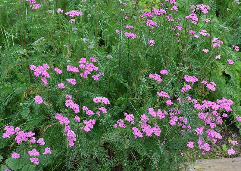 | Hageform av ryllik med rosa blomster |