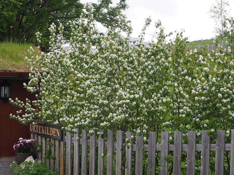 | Bærsøtmispel (Amelanchier alnifolia) i blomst i Oppdal i Trøndelag |