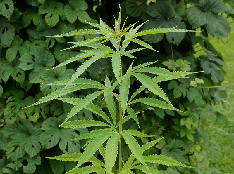 Hamp er en 2-3 m høy, ettårig urt med motsatte, 5-9-koplede, smale og sagtakkede blad. Blomstene er små, grønnaktige, enkjønnete og med hann- og hunn-blomster på hver sin plante, der hunnplantene er større og kraftigere enn hannplantene. På hunnblomsterstanden finnes det harpikskjertler som gir planten en eiendommelig lukt. Disse kjertlene inneholder over 60 cannabinoier, der det viktigst for den psykisk aktive virkningen er tetrahydrocannabinol (THC), og dessuten forekommer cannabidiol (CBD), cannabinol (CBN). Disse stoffene forekommer i størst mengde hos varianten indisk hamp (Cannabis sativa var. indica), som dyrkes bare for rusgiftens skyld. Hamp er utgangspunktet for produksjonen av cannabis, som har smertestillende, kvalmedempende, betennelseshemmende og beroligende egenskaper. Planten ha også en avførende og blodtrykksenkende virkning, og den brukes innvortes mot kvalme og oppkast i forbindelse med kjemoterapi mot kreft, og for å hjelpe aids-pasienter til å gjenvinne vekten. Cannabis brukes også for å redusere væsketrykket i øyet ved grønn stær. Hampefrø har i folkemedisinen vært brukt mot fordøyelsesbesvær og urinveislidelser. I tradisjonell kinesisk medisin blir frøene brukt til å behandle forstoppelse forårsaket av svakhet eller væskemangel. Medisinsk cannabis finnes som olje, tabletter, kapsler og munnspray i form av standardiserte ferdigpreparater. I Europa har hamp lenge vært dyrket i stor stil som tekstil- og oljeplante. Fram til slutten av 1800-tallet var hampedyrkingen viktig for produksjon av tekstiler og tauverk. Av hampefrø kan det presses en fet olje, hampolje, som har stor og bred anvendelse. Den tilhører en av de aller mest helsebringende oljene og er svært rik på flerumettede fettsyrer og protein. Smaken er behagelig nøtteaktig, og oljen brukes bl.a. som matolje, i legemidler, hudpleieprodukter, malerfarger og såpe. Frøene brukes også som fuglefrø. |