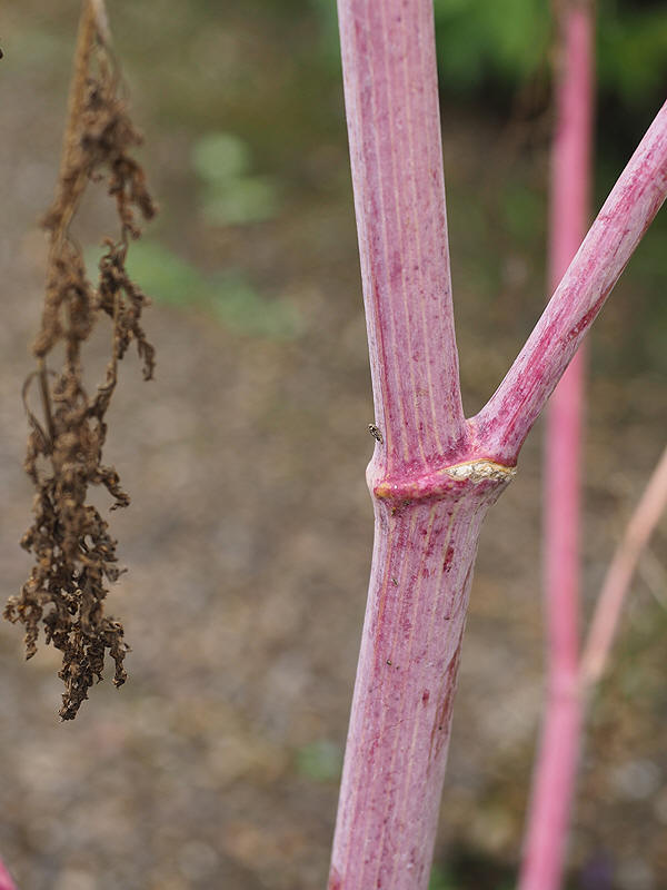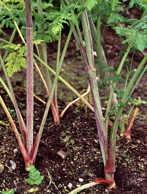 | Giftkjeks har mer eller mindre rødflekkete stengler, noe som skiller arten fra hundekjeks (Anthriscus sylvestris). |