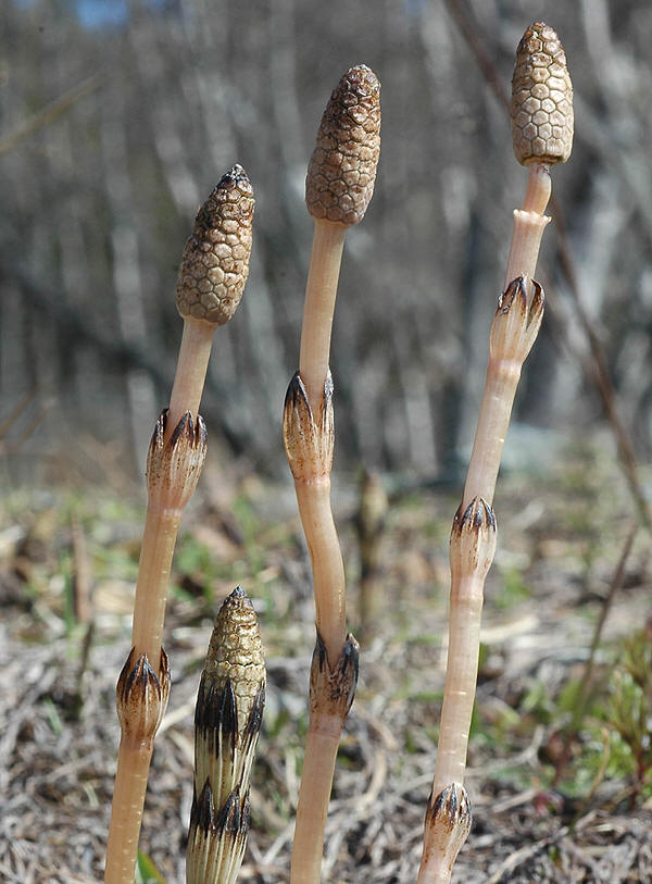 | Sporebærende vårstengler av åkersnelle. Disse brukes ikke som urtemedisin. | ||||||||||||