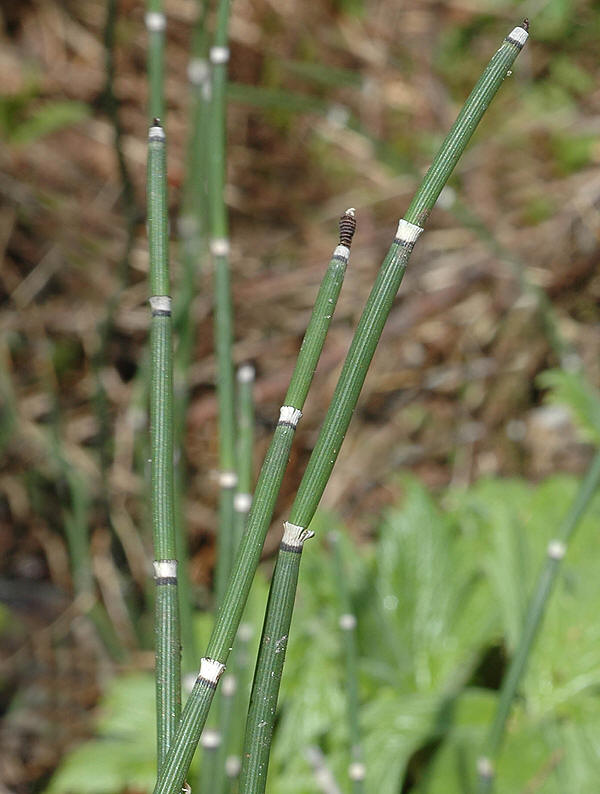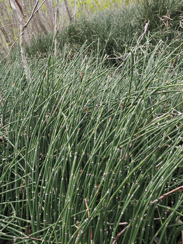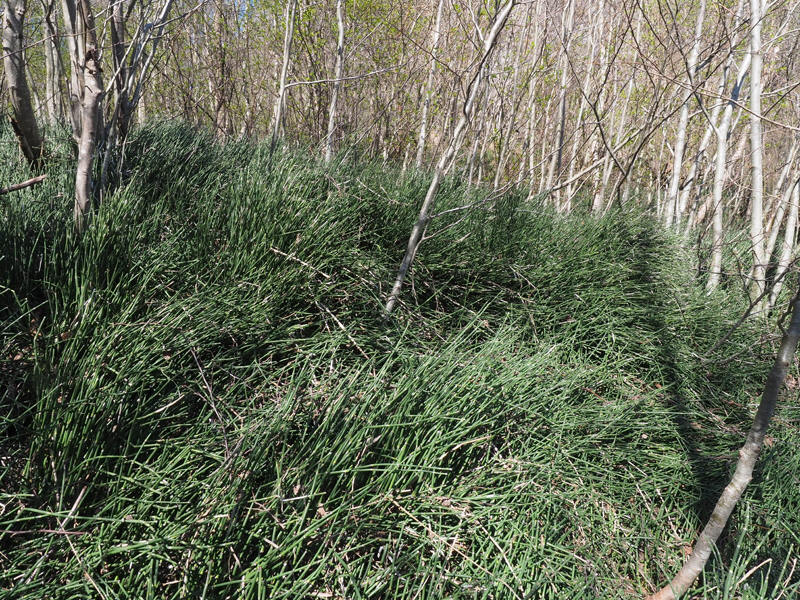 | En gråorskog med tett bunndekke av vintergrønt skavgras, fotografert i Sunndal i Møre og Romsdal i april. |