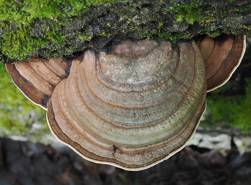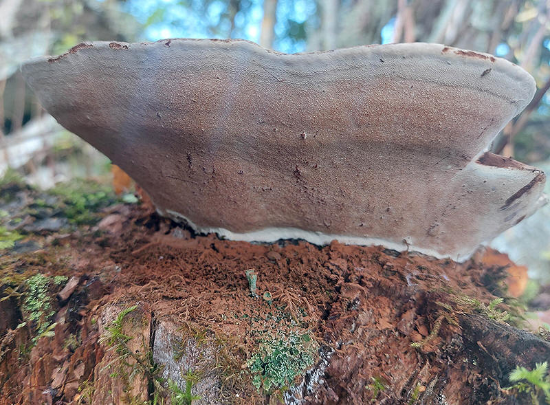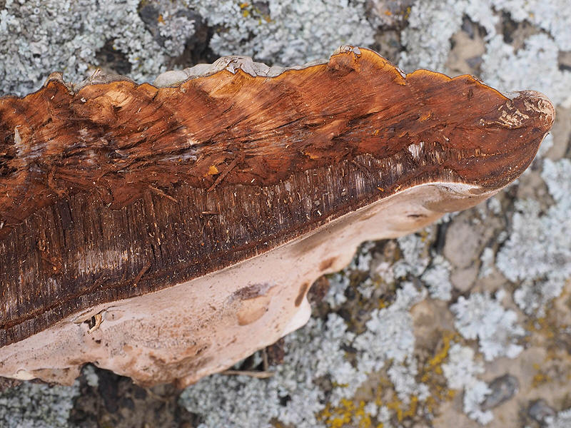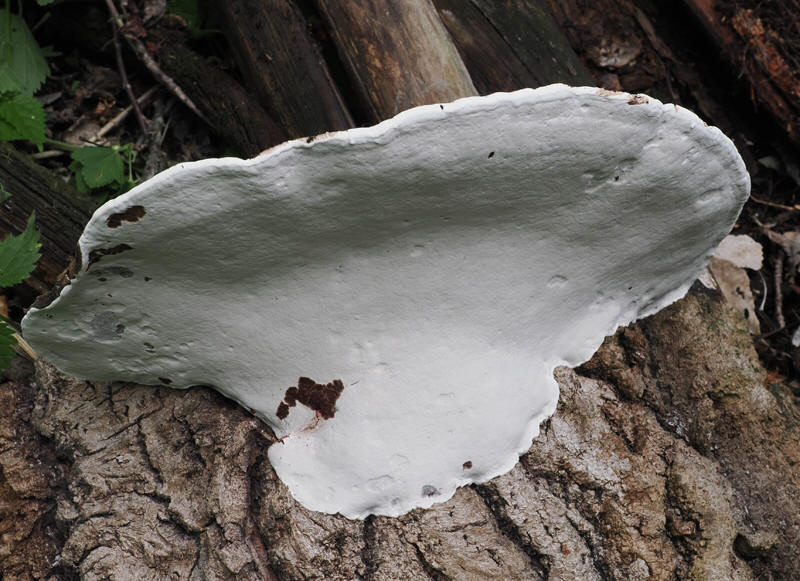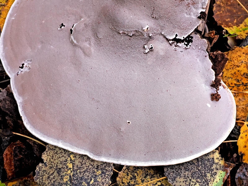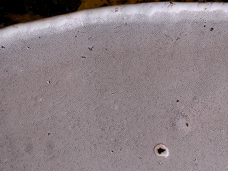 | Undersiden av flatkjuke har et hvitt porelag som får mørke flekker ved berøring. |