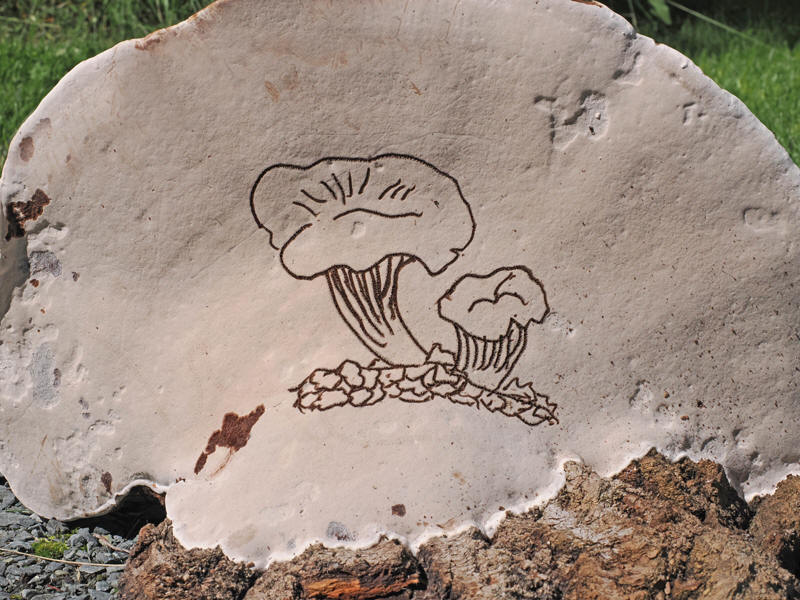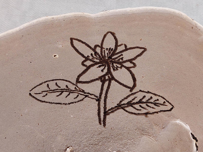 | Når man lager riper i det hvite laget på soppens underside, blir strekene mørke. Derfor kan soppen fungere som et "tegnebrett" (se de to bildene nedenfor), og dette er grunnen til at flatkjuke på engelsk kalles "Artist's conk". |