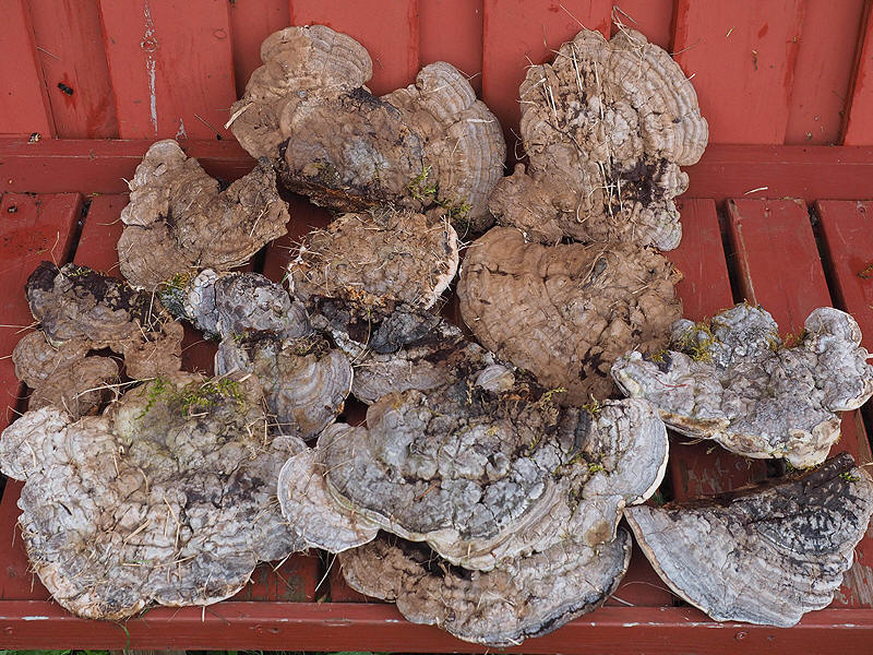 | Flatkjuker innsamlet fra to store råtne bjørkestubber ved Gjøra i Sunndal 5. juni 2021. |
