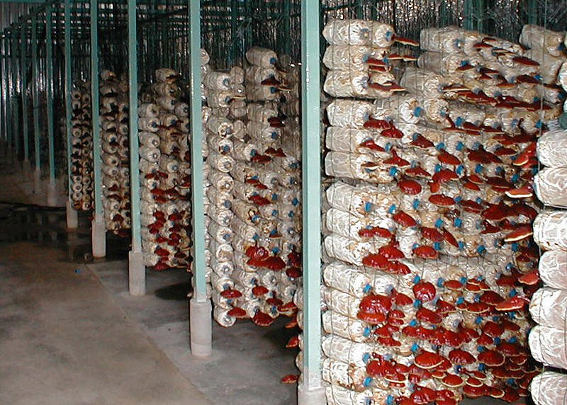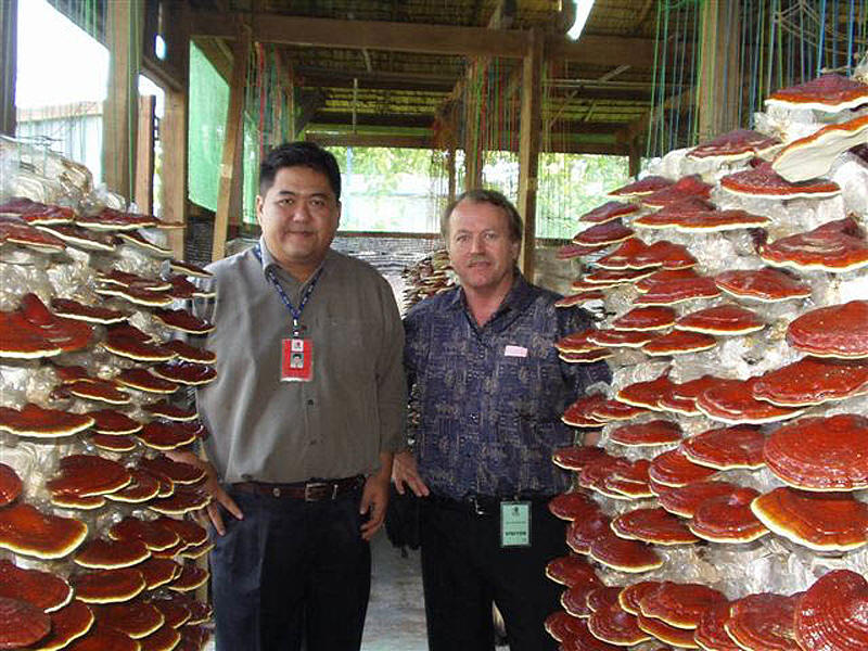 Fra et dyrkingsanlegg for reishi i Malaysia. Foto ©: Rune Lønmo |