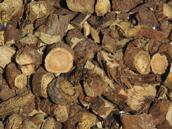| Tørket og oppskåret rot av kinesisk lakrisrot |
