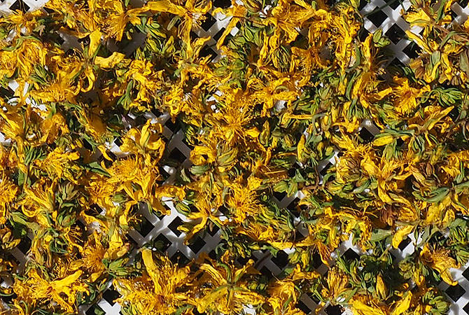 | Høstede prikkperikumblomster som er klare for tørking. |