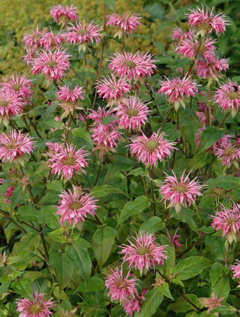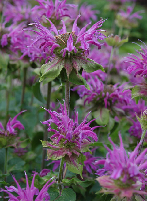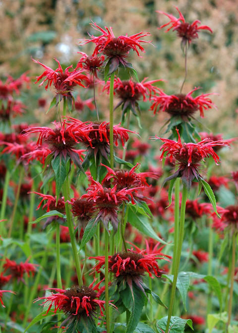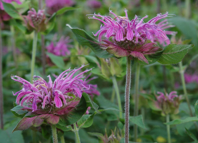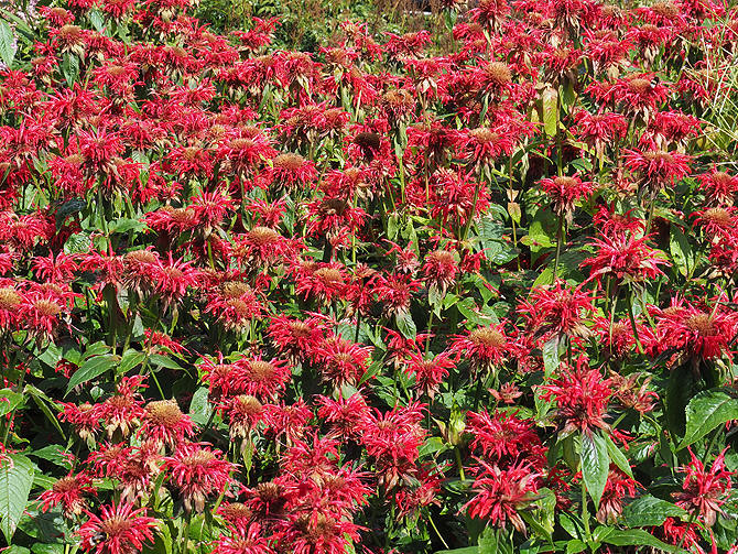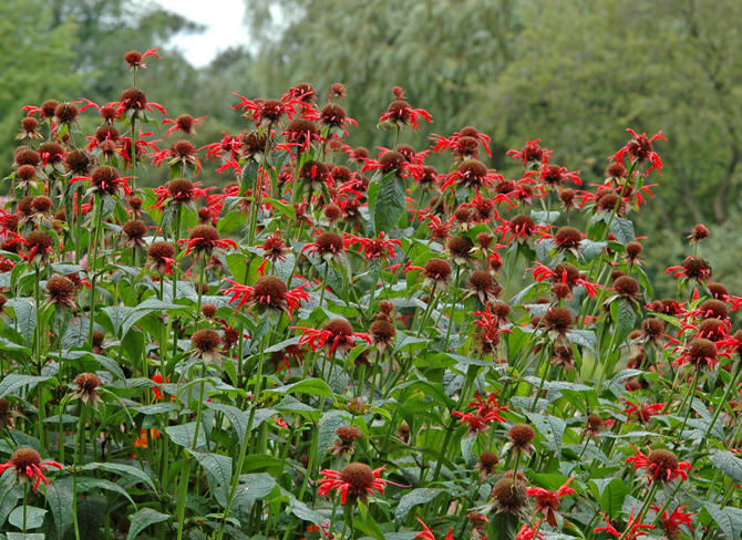 | Hestemynte (Monarda didyma) er en variabel art, og det finnes mange ulike navnesorter (kultivarer) som kan være attraktive som prydplanter i en urtehage eller et staudebed. Nedenfor vises noen av disse navnesortene. Plantene er fotografert i Göteborgs botaniska trädgård i 2010. |