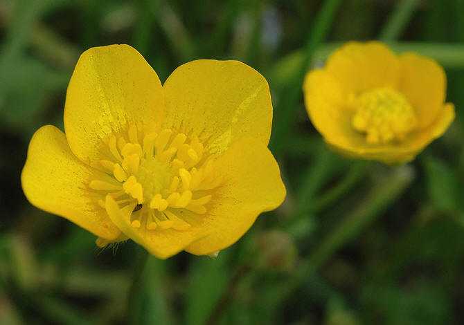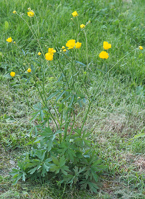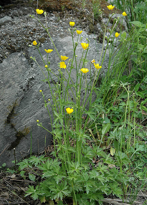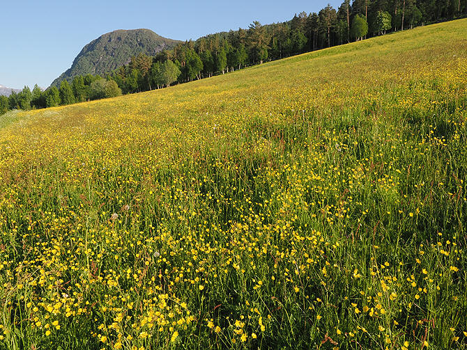 Slektsnavnet Ranunculus betyr liten frosk på latin, og viser til at mange arter i denne slekta trives på fuktige steder. Artsnavnet acris kommer av acer, som betyr skarp eller bitter, og viser til smaken på planten. På norsk kaller vi gjerne planten for smørblomst, og det er en vanlig barnelek å holde en blomst opp mot en annens hake og spørre om vedkommende liker smør. Får de gult gjenskinn under haken, er svaret ja. I tidligere tider var engsoleie brukt en del i folkemedisinen, men på grunn av at planten er temmelig giftig, er slik bruk nå forlatt. Man bør unngå å få plantesaft av engsoleie og andre soleiearter på huden og i munnen og øynene, og hvis så skulle skje bør man raskt vaske det aktuelle området med lunkent vann. Hvis plantesaft av engsoleie påføres huden, dannes det utslett, blemmer og stygge sår, noe tiggere i tidligere tider utnyttet bevisst for å få større medlidenhet hos potensielle givere. Slike selvpåførte skader kunne også benyttes av ungdommer for å slippe militærtjenesten. Når den friske planten knuses, frigjøres det giftige og etsende stoffet protoanemonin. Innen folkemedisinen har man utnyttet denne etsende effekten hos engsoleie og andre soleiearter ved å smøre saft av friske planter på vorter og fregner som man ville bli kvitt. Man har også brukt soleier som omslag ved leddsmerter, urinsyregikt og andre revmatiske lidelser. En grøt kokt på engsoleie ble lagt på byller, slik at disse lettere kunne sprekke. Husdyr spiser vanligvis ikke soleier og derfor ser man ofte at engsoleien står urørt på beiteland. I tørt høy og silo er soleiene imidlertid ufarlige, da protoanemoninet ved tørking eller ensilering omdannes til anemonin, som ikke er giftig. Les mer om giftigheten til soleieartene i artikkelen Hvorfor er soleier giftige? |