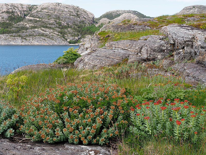| Rosenrot vokser gjerne på holmer og skjær ytterst i havgapet. | ||