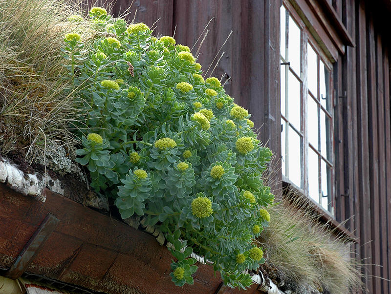 | Hunnplante av rosenrot på et hyttetak i Oppdal. | ||
