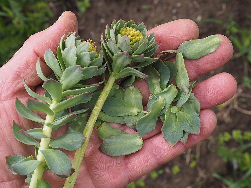 | Man kan raspe av bladene av rosenrotstenglene og spise dem som en grønnsak. | ||