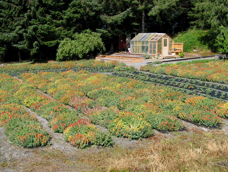 | Dyrkingsfelt med rosenrot. Smøla i Møre og Romsdal, juli 2008. | ||