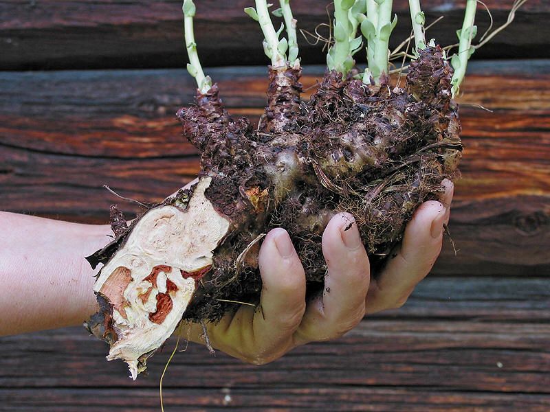| Det er de tykke rotstokkene til rosenrot som brukes som medisin. | ||