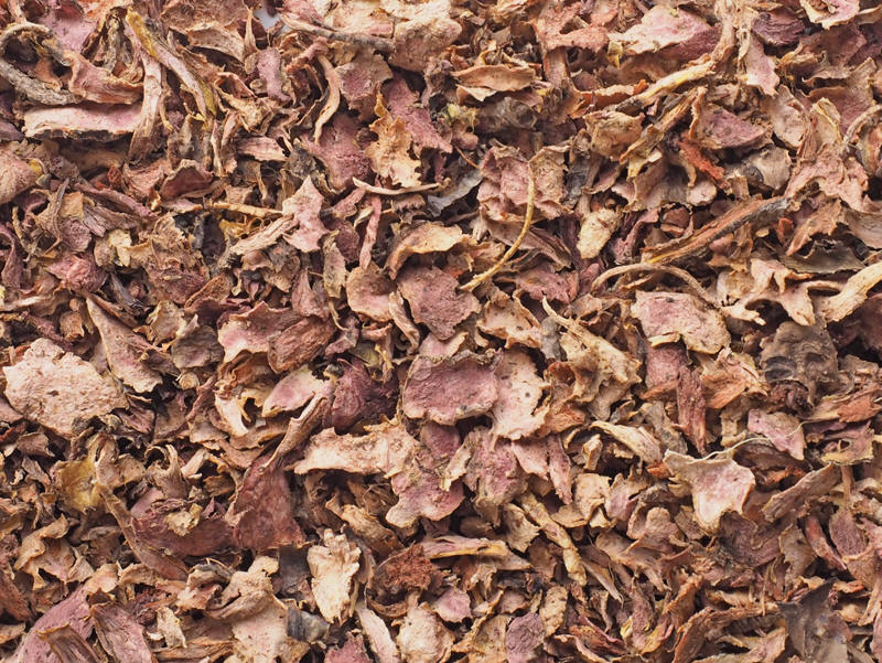 Oppskåret og tørket rot av rosenrot har