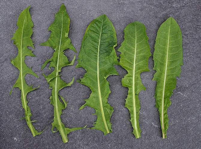 | Det er stor ulikhet på formen til løvetannblad, også på en og samme plante. |