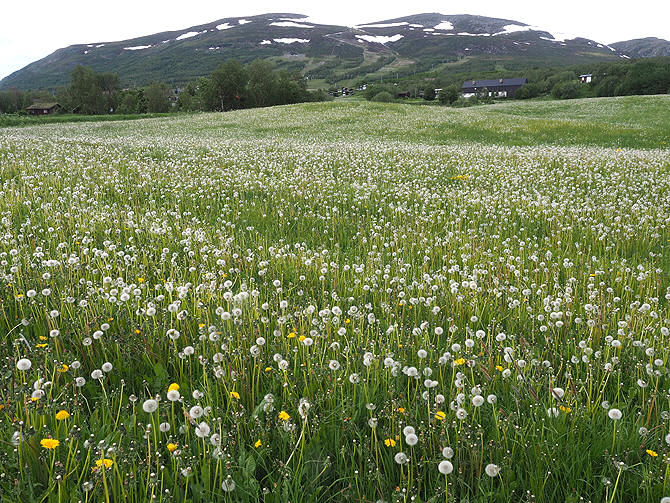 | En løvetann-eng i Oppdal, fotografert 9. juni 2019. |