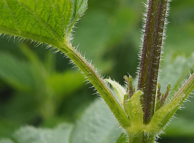 | Bildet over viser skognesle (Urtica dioica var. holosericea), en variant av stornesle som mangler eller har svært få brennhår og som derfor ikke "brenner" når man tar på den. Denne varianten har også smalere blad en vanlig stornesle. |