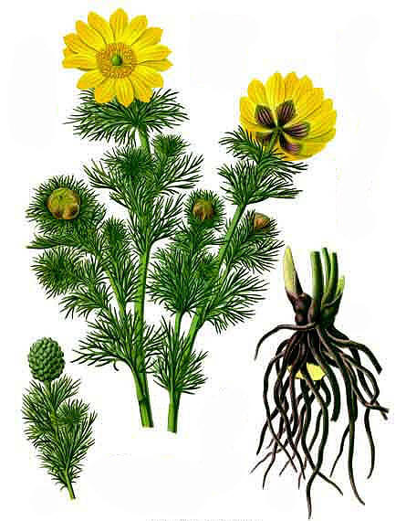 | Denne illustrasjonen av våradonis er hentet fra Köhler's Medizinal-Pflanzen |