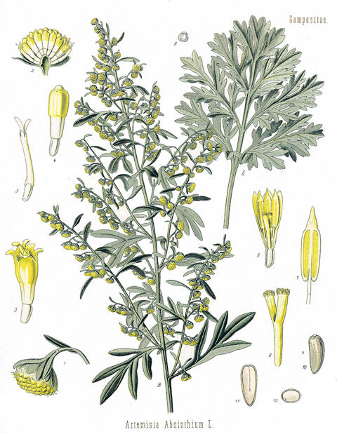 | Illustrasjonen av malurt er hentet fra Köhler's Medizinal-Pflanzen |