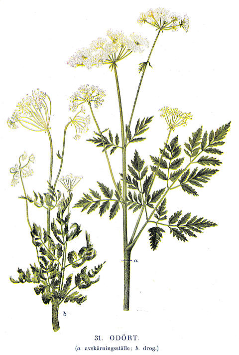 | Denne illustrasjonen av giftkjeks er hentet fra Våra Medicinalväxter av Lind og de Verdier, Stockholm 1917 |