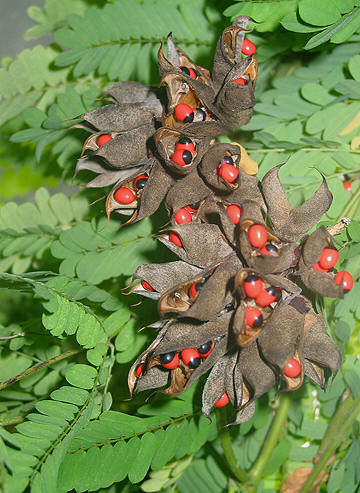 ofte på grunn av de vakkert fargede, men ekstremt giftige frøene. Frøene