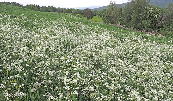 små, hvite blomstene sitter i skjermer, og i løpet av en sommer kan