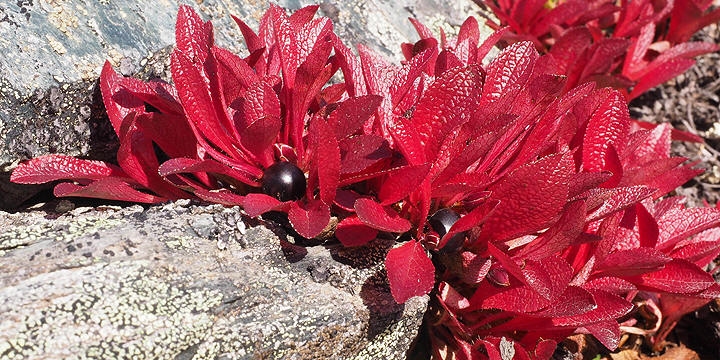 på de tørre, nakne og forblåste rabbene i høyfjellet. Bladene faller