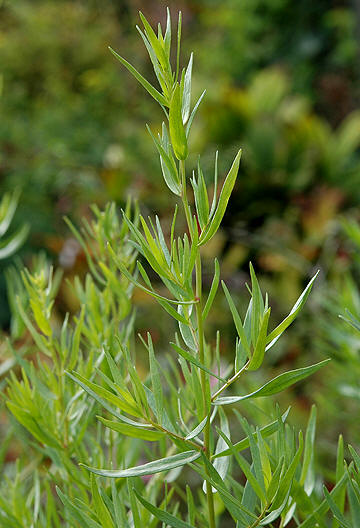 lansettformede, glatte og aromatiske bladene er udelte, men kan være