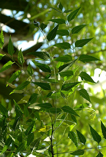 30 cm lange med 8-19 småblad med sagtagget kant. Treet har små, gulhvite,