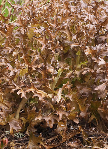 og grenet, og løst festet til underlaget. Fargen er normalt grågrønn,