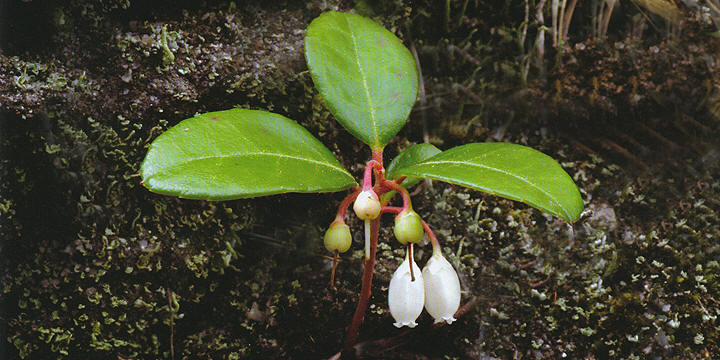 hardfør, mattedannende, eviggrønn busk som blir 10-15 cm høy. De krypende stenglene har
